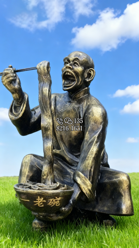 吃面的玻璃鋼仿銅人物雕塑