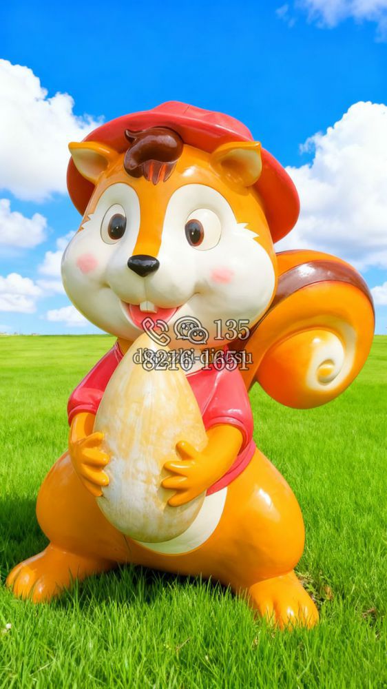 手抱堅果的玻璃鋼卡通松鼠雕塑