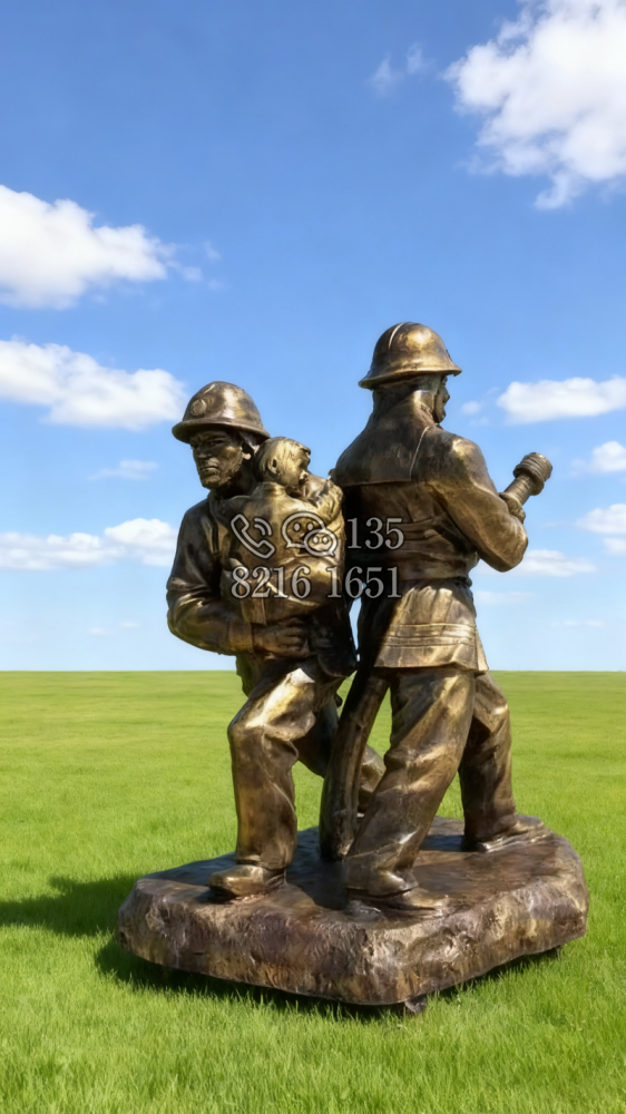 玻璃鋼仿銅消防員雕塑 (15)