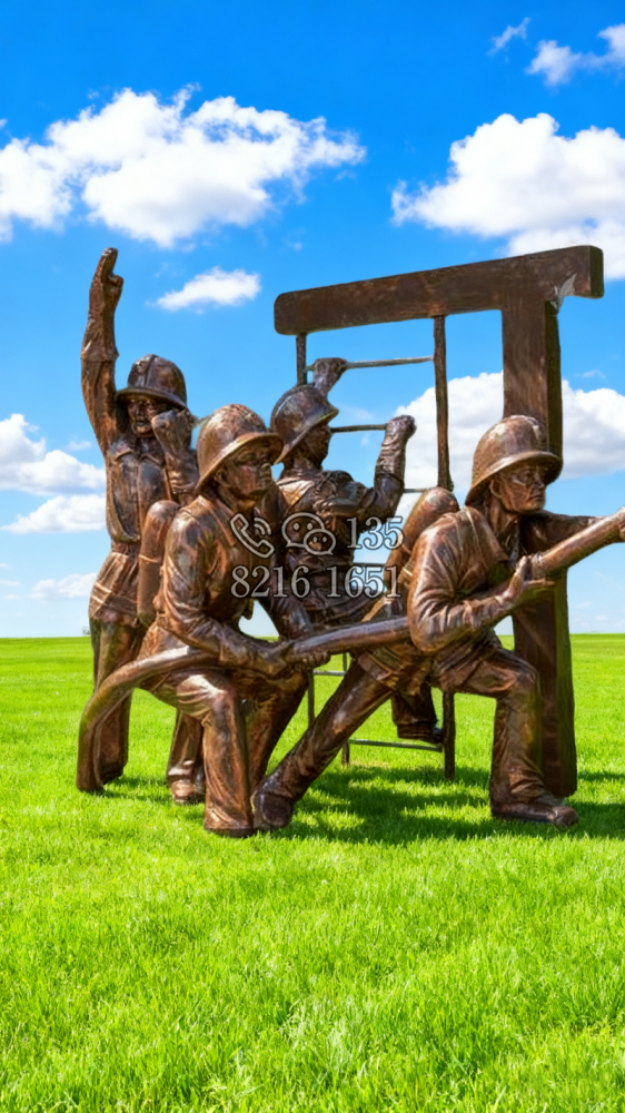 玻璃鋼仿銅消防員雕塑 (14)