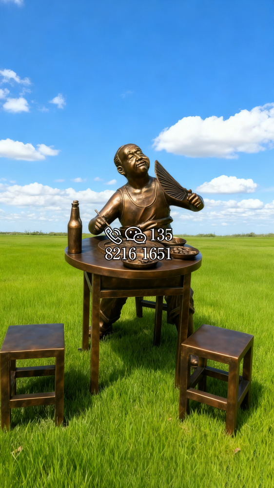 玻璃鋼仿銅吃火鍋的人物雕塑 (3)
