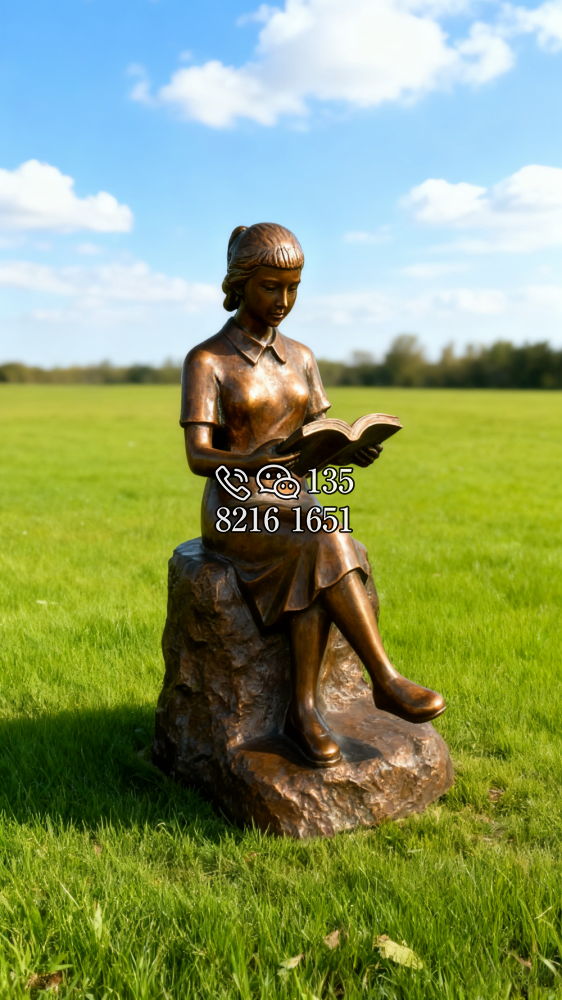 純銅鑄造看書女孩雕塑