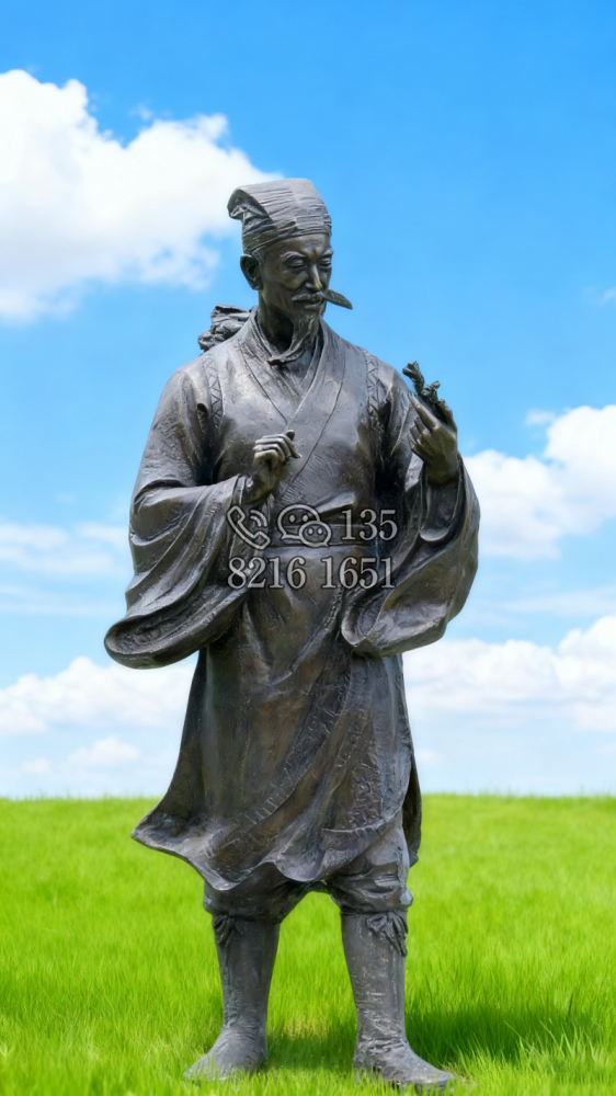 冉雪峰,湖北省中西醫(yī)會(huì)第一屆正會(huì)長(zhǎng),出生于醫(yī)藥世家,12歲起隨父采藥,同時(shí)習(xí)醫(yī)。17歲開診于故里,38歲懸壺于湖北武昌。雕塑高1.68米,玻璃鋼仿銅效果。