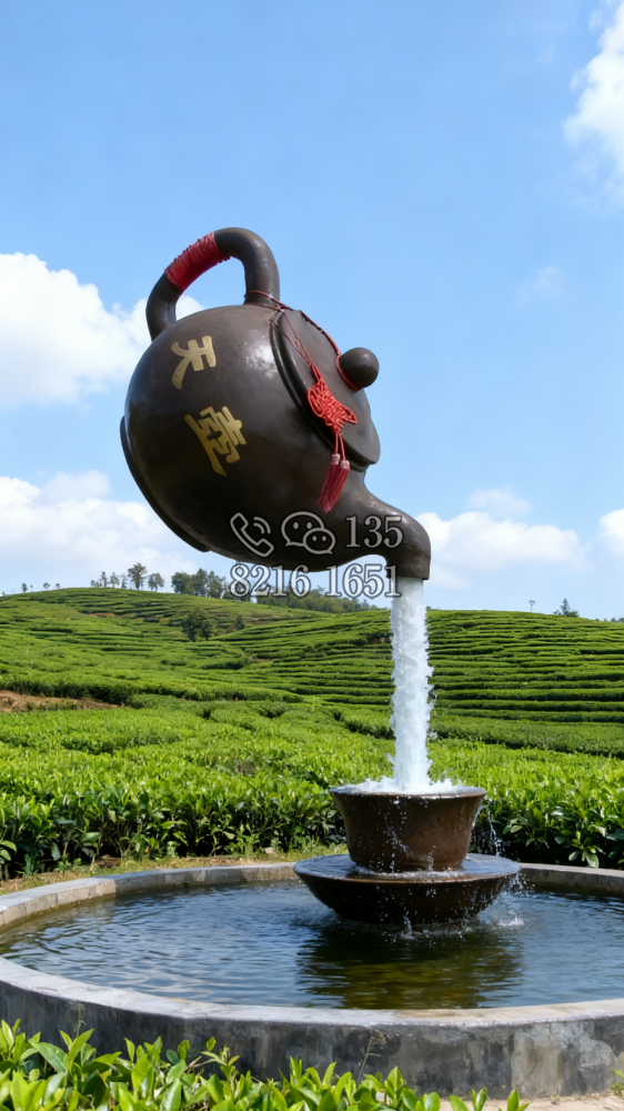 玻璃鋼材質(zhì),仿陶罐,大型流水景觀雕塑。總高6米,頂部陶罐長(zhǎng)1.26米,中間主體陶罐高4.1米,去除底部一圈陶罐和外部飄帶造型,內(nèi)置水管水泵,水被抽入頂部陶罐,再?gòu)奶展蘅诹舫?,形成水流源源不斷永遠(yuǎn)流不完的錯(cuò)覺。